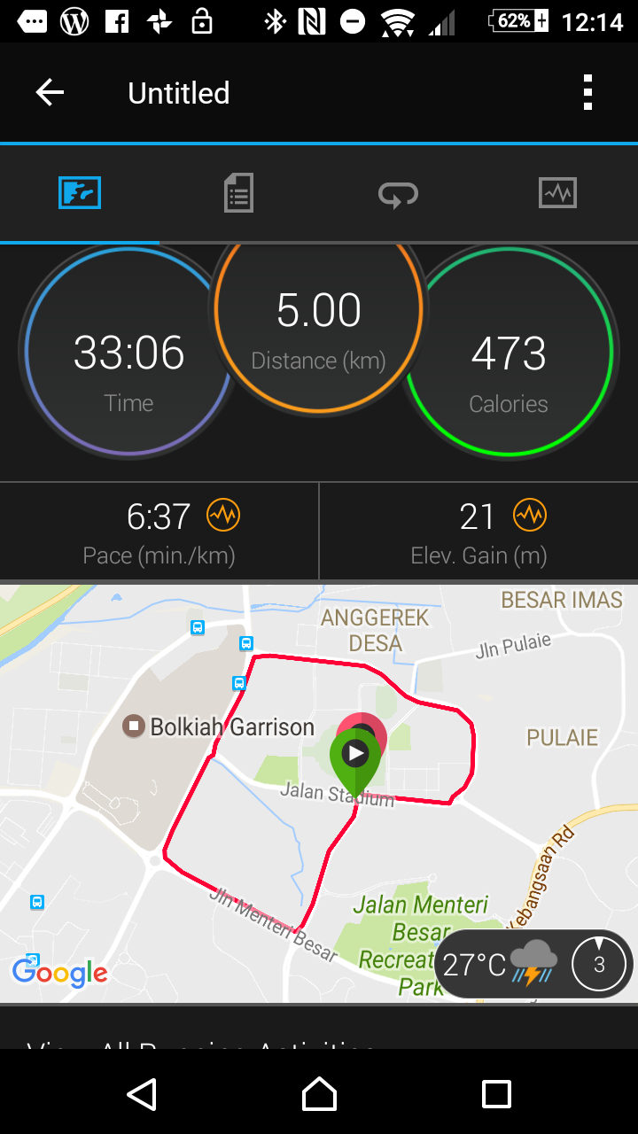 After class finished, I decided to go for a run. 5km run at pace 6.5. I was surprised to feel some strain on my inner right ankle, and a side stitch on my left. I withstood the pain of the stitches, ran slow to keep the pain bearable. I think my body is not used to running as it used to. I might need to start with short distances again. I will have to decrease my distance and intensities for my next runs. Maybe 3km at pace 7.